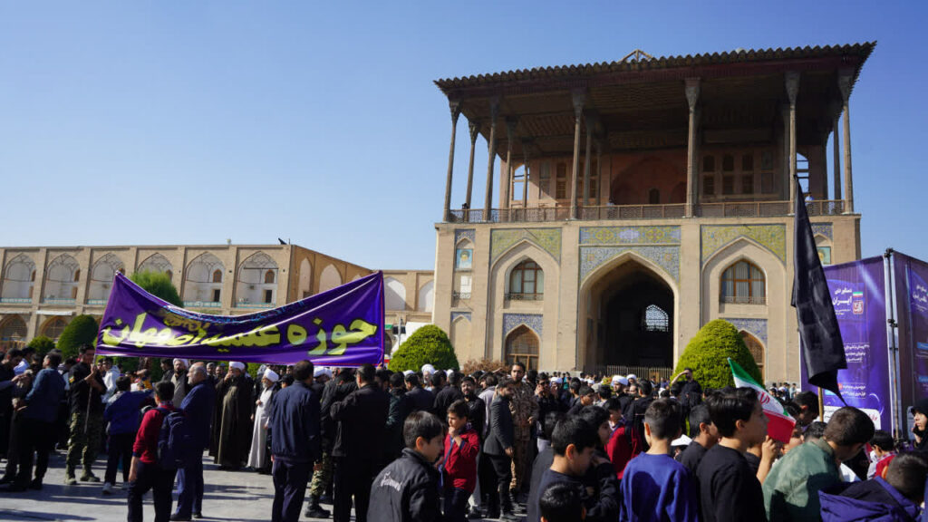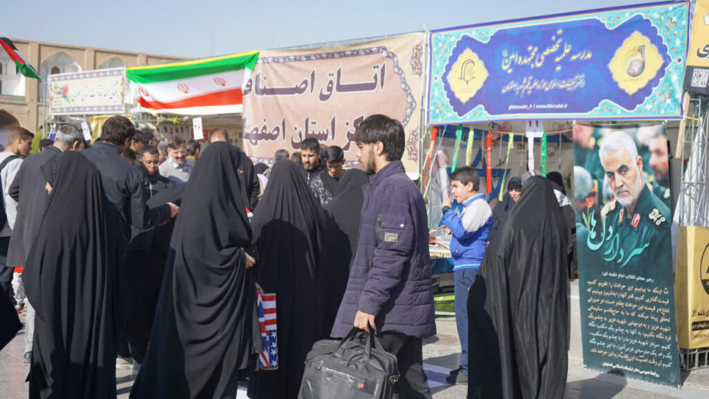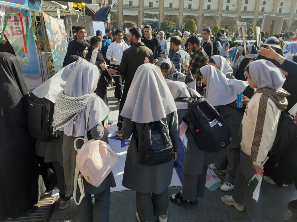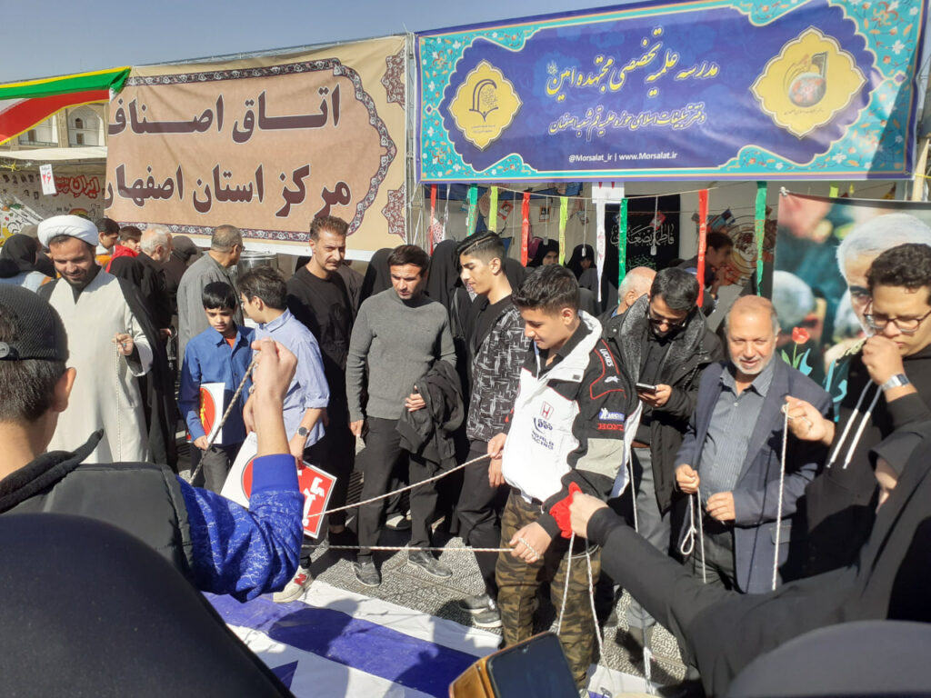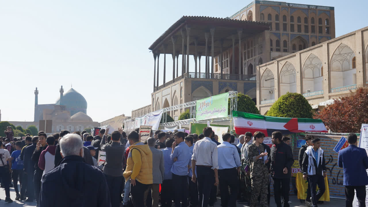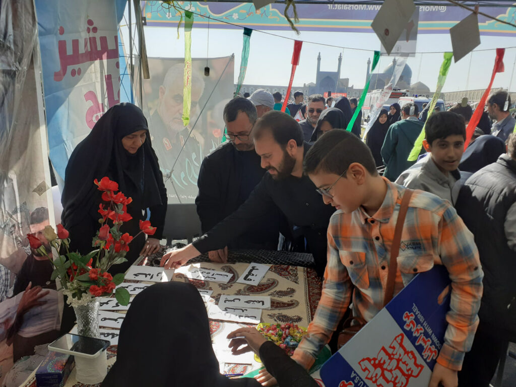 حضور کارکنان دفتر تبلیغات اسلامی اصفهان در اجتماع ۱۳ آبان، روز ملّی مبارزه با استکبار جهانی به همراه برپایی غرفههای این دفتر در میدان امام(ره) اصفهان